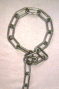 Und wie in den alten Filmen, wo der Held den Bösewicht an der Krawatte nimmt (oder war es umgekehrt?) gehen die Chancen rapide in den Keller, wenn sich jemand am roten Kettenende zu schaffen macht wie im obigen Bild. Es reicht alle mal aus, ein einziges Kettenglied zu kontrollieren, nicht notwendigerweise eines in Halsnähe...